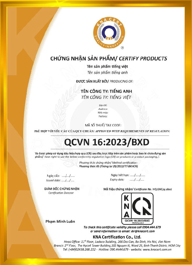 MẪU GIẤY CHỨNG NHẬN HỢP QUY CỦA KNA CERT