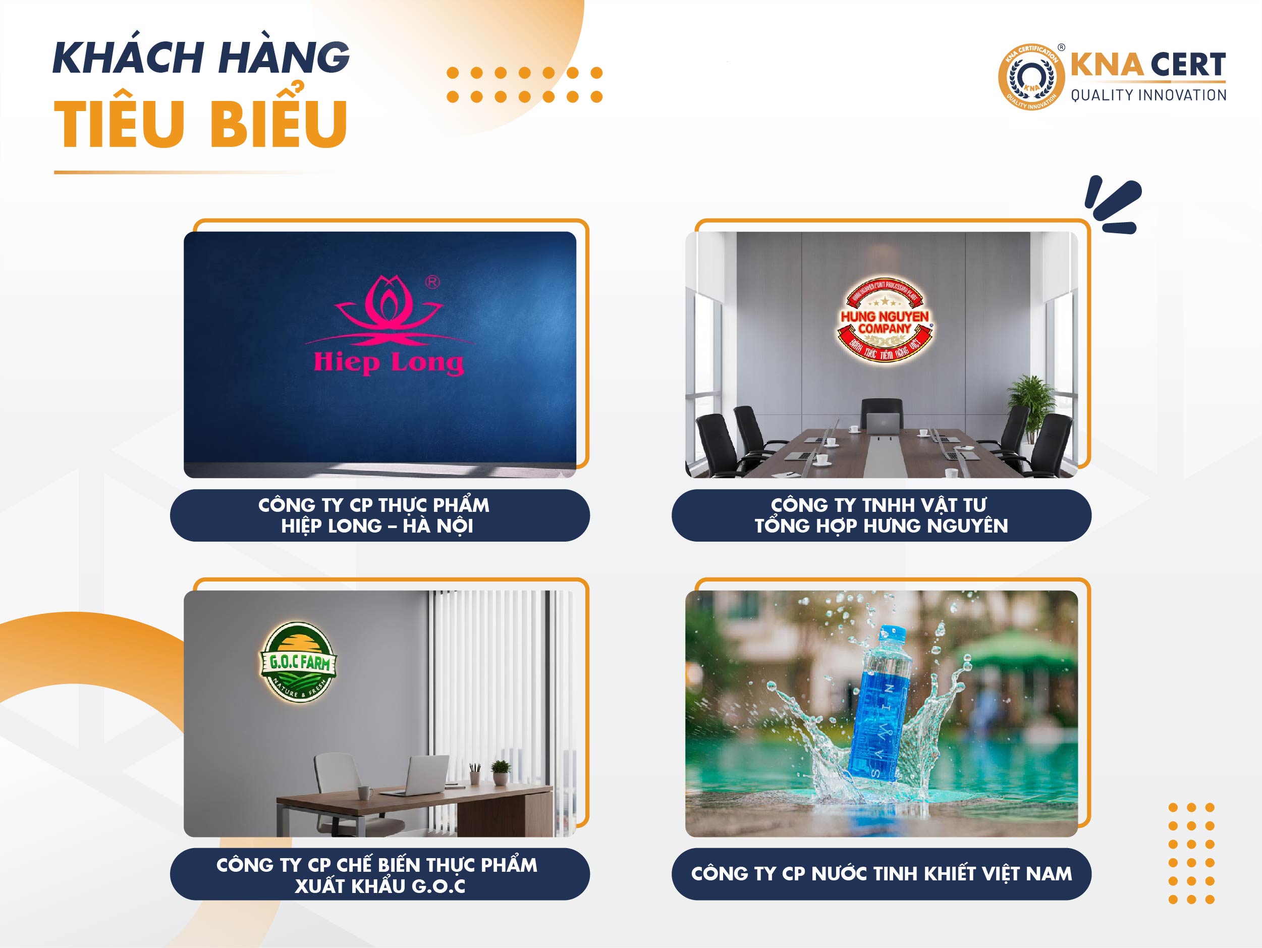KNA CERT đã hỗ trợ cấp hàng nghìn chứng chỉ ISO 22000 cho các doanh nghiệp hoạt động trong nhiều lĩnh vực, ngành nghề khác nhau. Dưới đây là một số Khách Hàng đã sử dụng dịch vụ của Chúng Tôi: