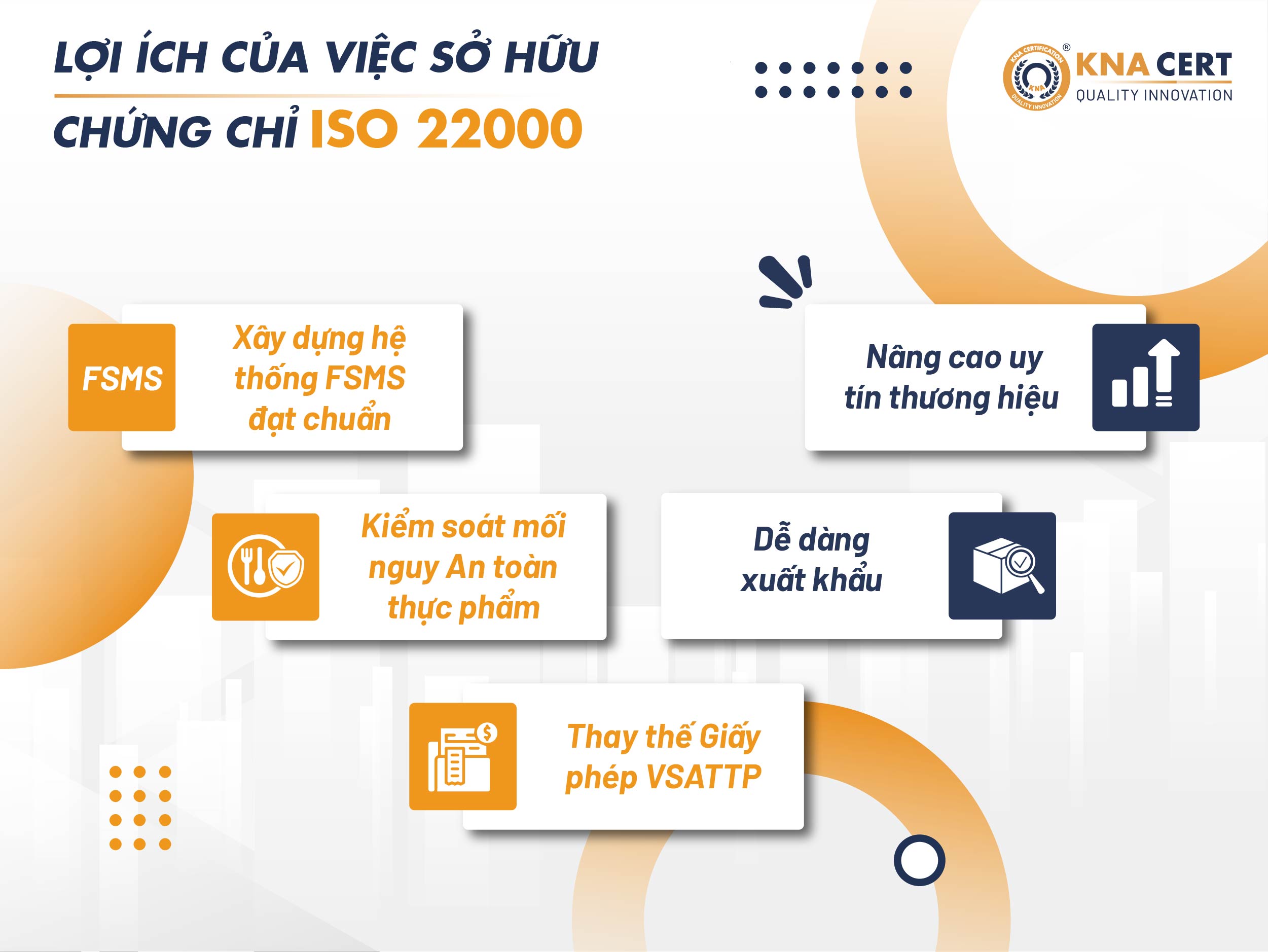 Với tư cách là một trong những tổ chức chứng nhận hàng đầu tại Việt Nam, cùng phương châm: “Cùng Doanh Nghiệp vươn tầm Quốc Tế - Nâng vị thế Thương Hiệu Quốc Gia”, KNA tự hào đã giúp hàng nghìn doanh nghiệp sở hữu các chứng chỉ hợp lệ, trong đó có chứng nhận ISO 22000.