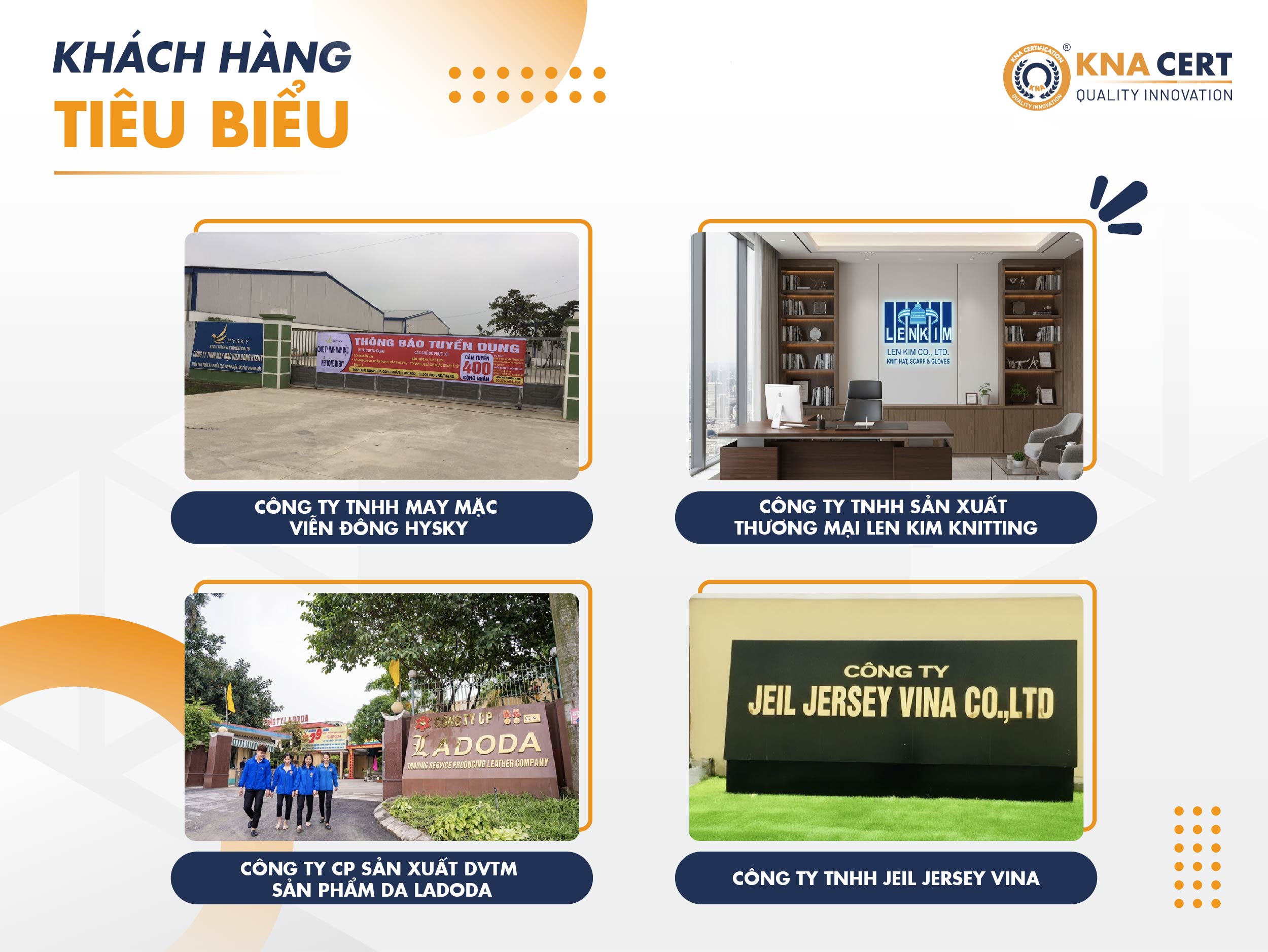 KNA CERT đã hỗ trợ cấp hàng nghìn chứng chỉ WRAP cho các doanh nghiệp hoạt động trong chuỗi cung ứng dệt may và da giày. Dưới đây là một số Khách Hàng đã sử dụng dịch vụ của Chúng Tôi: