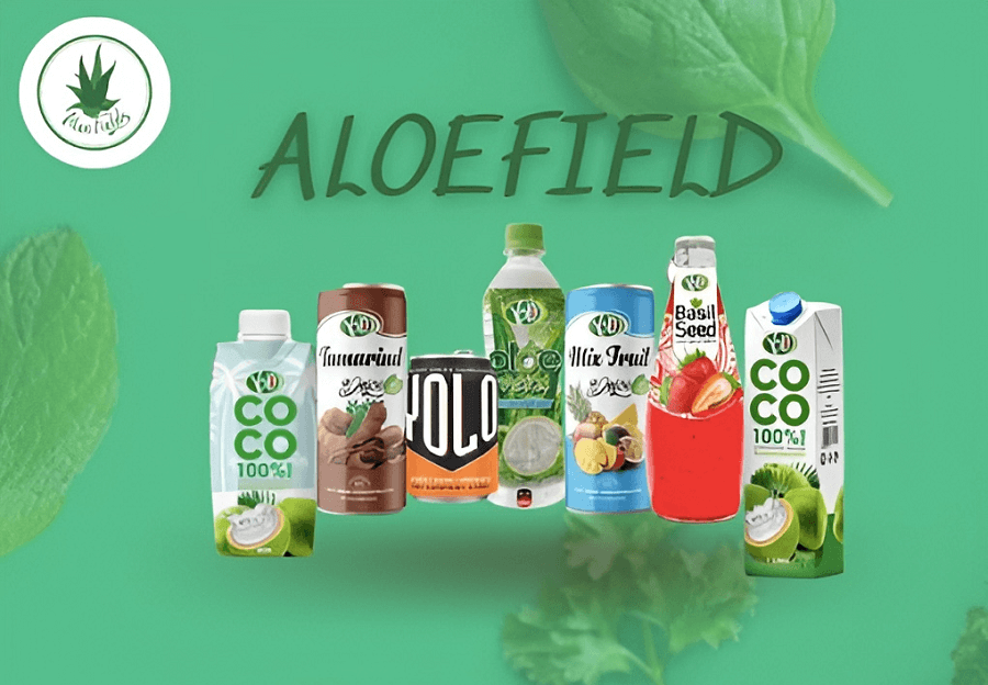 Các sản phẩm của ALOEFIELD được xuất khẩu sang hơn 85 quốc gia trên toàn Thế giới. ALOEFIELD sản xuất, gia công đa dạng các sản phẩm như: nước ép trái cây, nước dừa, nước lô hội, hạt chia và húng quế, nước tăng lực, nước cốt dừa, nước uống cà phê, nước giải khát, nước uống,...