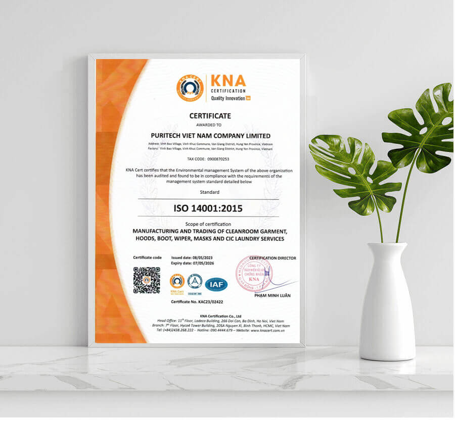 Để xác minh sự tuân thủ, Công ty TNHH Puritech Việt Nam đã đăng ký chứng nhận ISO 9001 và chứng nhận ISO 14001 với KNA CERT. KNA được Tổng cục Tiêu chuẩn Đo lường Chất lượng thuộc Bộ Khoa học và Công nghệ (BKHCN) cấp giấy phép chứng nhận Hệ thống quản lý chất lượng theo ISO 9001:2015 và chứng nhận Hệ thống quản lý môi trường theo ISO 14001:2015. Ngoài ra, KNA được Văn phòng Công nhận chất lượng (BOA) thuộc BKHCN, thành viên ký thỏa ước thừa nhận lẫn nhau MLA của Diễn đàn Công nhận Quốc tế IAF công nhận có đủ năng lực tiến hành đánh giá chứng nhận ISO 9001 và ISO 14001 (với số hiệu VICAS 059–QMS và VICAS 059–EMS). Do đó, chứng chỉ ISO 9001:2015 và ISO 14001:2015 do KNA CERT trực tiếp cấp có đầy đủ giá trị pháp lý được công nhận Toàn cầu.