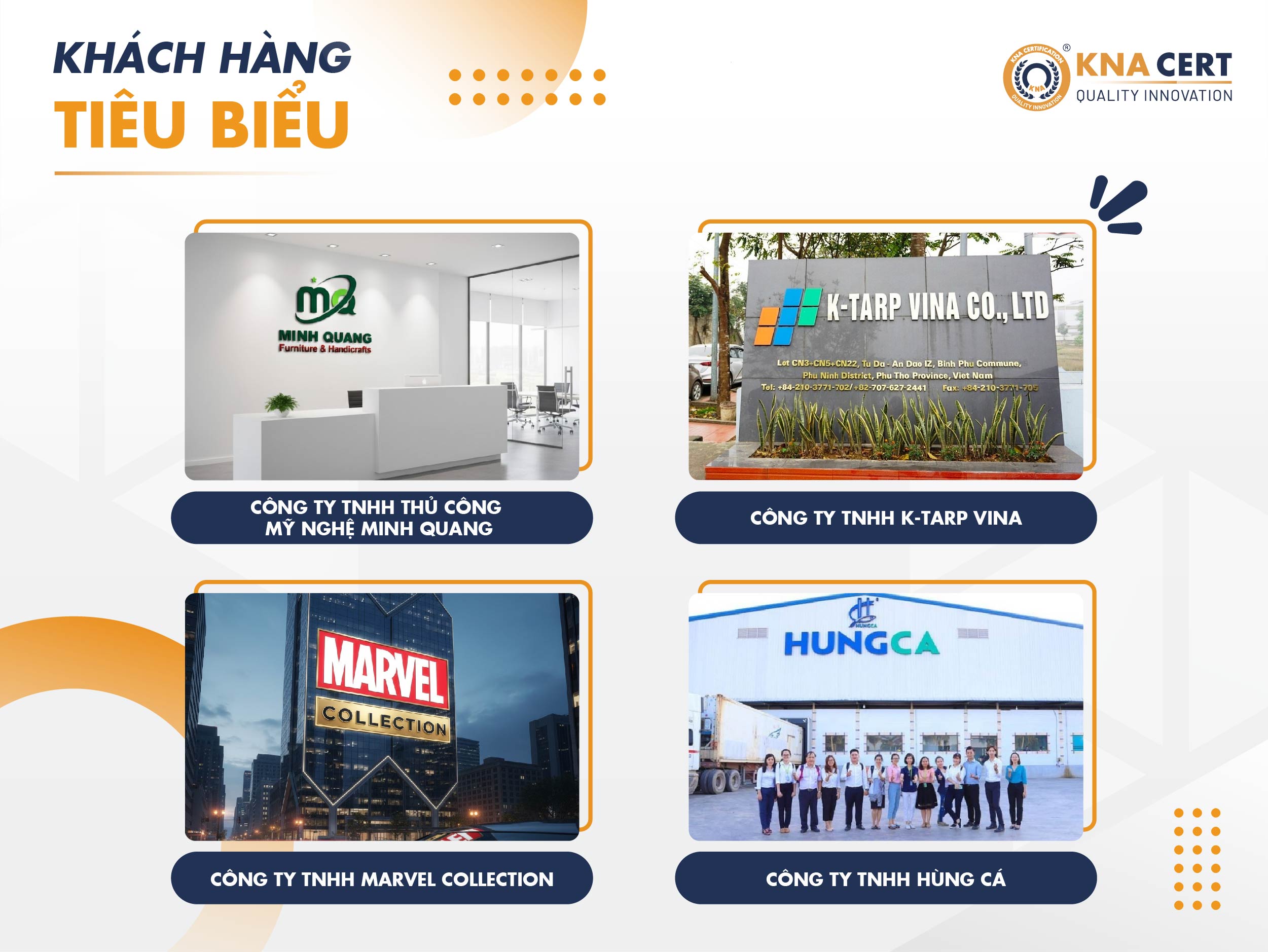 KNA CERT đã hỗ trợ cấp hàng nghìn báo cáo BSCI cho các doanh nghiệp trong nhiều ngành nghề, lĩnh vực khác nhau. Dưới đây là một số Khách Hàng đã sử dụng dịch vụ của Chúng Tôi: