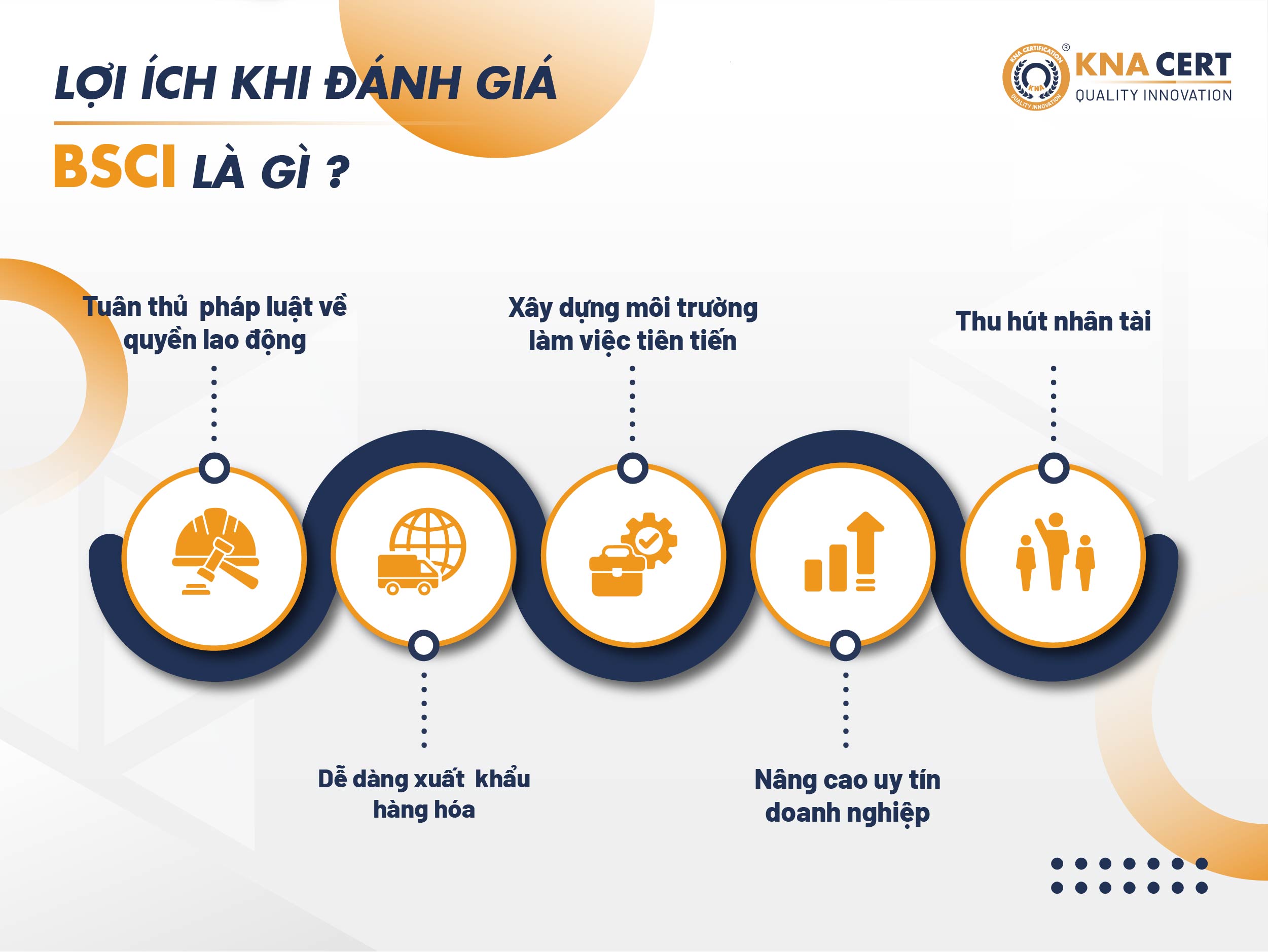 Tiêu chuẩn BSCI (Business Social Compliance Initiative) là bộ quy tắc ứng xử toàn diện về trách nhiệm xã hội, giúp doanh nghiệp nâng cao uy tín, tuân thủ đạo đức kinh doanh và tiếp cận thị trường quốc tế. Dịch vụ hỗ trợ đánh giá BSCI từ KNA CERT mang lại lợi ích về chi phí hợp lý, quy trình chuyên nghiệp, và sự công nhận toàn cầu. Liên hệ KNA CERT ngay để nhận giải pháp tối ưu cho doanh nghiệp bạn.
