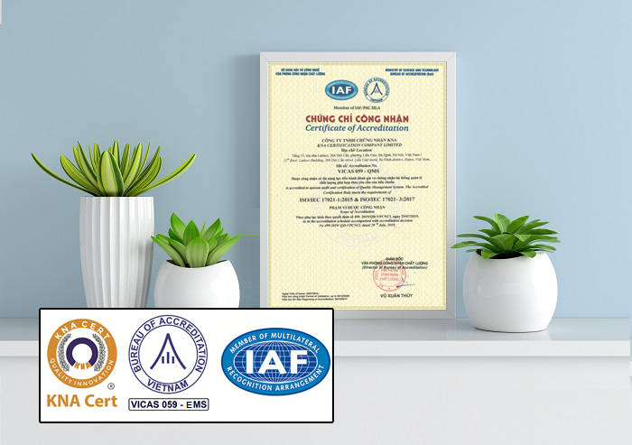 Với đội ngũ chuyên gia trên 10 năm kinh nghiệm triển khai thực tế, KNA cam kết hỗ trợ 24/7, giải đáp mọi vướng mắc cả về thủ tục pháp lý và quy trình chứng nhận cho Khách Hàng.