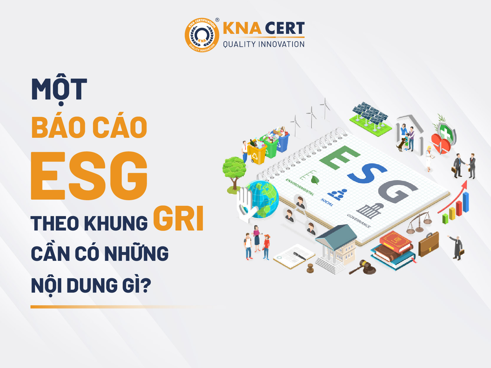 Báo cáo ESG theo khung GRI gồm những gì? Quy trình thực hiện ra sao? KNA CERT — GRI Community Member — hướng dẫn từng bước, đảm bảo báo cáo đúng chuẩn quốc tế.