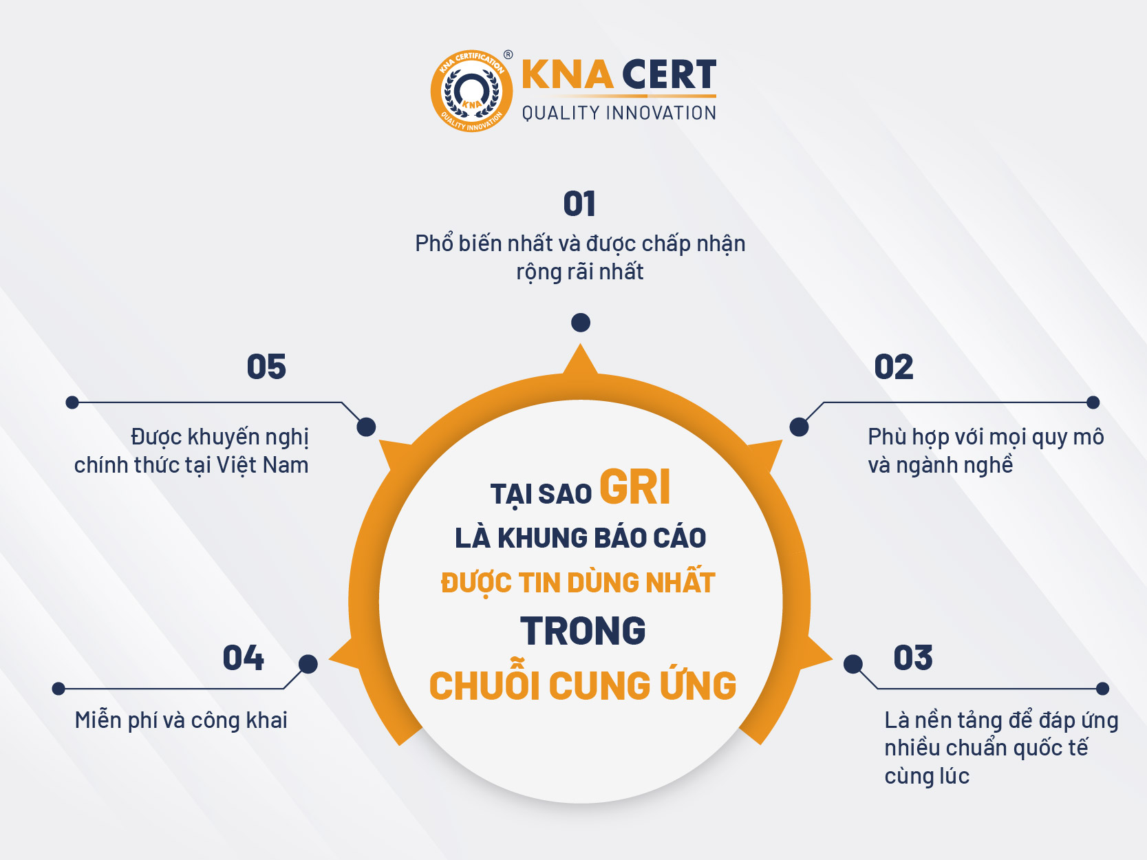 - Với hơn 10 năm kinh nghiệm, đội ngũ chuyên gia KNA CERT có nền tảng kỹ thuật để hiểu cấu trúc và yêu cầu của GRI ở mức thực hành — không chỉ lý thuyết.