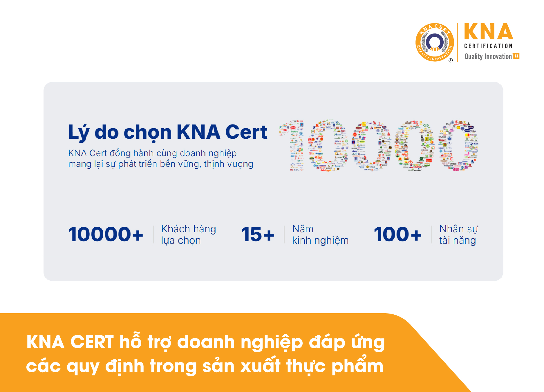 Với phương châm “Cùng doanh nghiệp vươn tầm Quốc tế - Nâng vị thế thương hiệu Quốc gia”, KNA CERT không chỉ là đối tác tư vấn mà còn là người bạn tin cậy trên hành trình xây dựng thương hiệu uy tín, bền vững cho doanh nghiệp trong ngành thực phẩm bảo vệ sức khỏe.