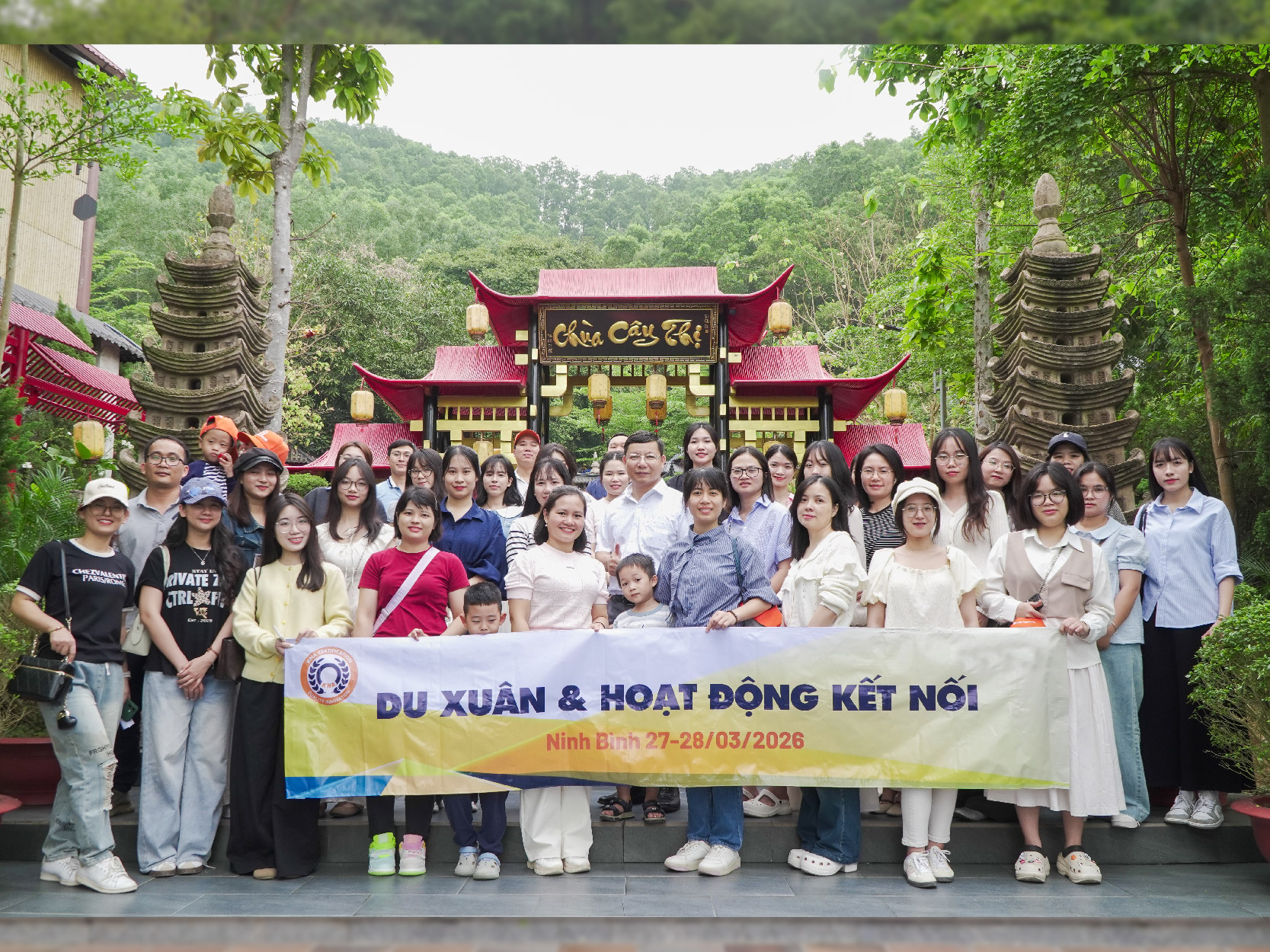Tiếp nối hành trình, từ 11h30 đến 12h30, đoàn di chuyển đến Chùa Cây Thị - một chốn linh thiêng khác nằm giữa lưng chừng núi. Chùa Cây Thị thuộc địa phận Hà Nam cũ, nay là Ninh Bình, nổi tiếng với truyền thuyết về cây thị đại thụ hơn 400 năm tuổi đứng sừng sững bên cạnh. Cây thị cổ thụ này không chỉ là biểu tượng của sự trường tồn mà còn gắn liền với nhiều câu chuyện tâm linh được lưu truyền qua nhiều đời. Không khí tại Chùa Cây Thị mang một nét cổ kính và linh thiêng riêng biệt, khiến mọi người thêm trân trọng những giá trị văn hóa tinh thần mà tổ tiên để lại.