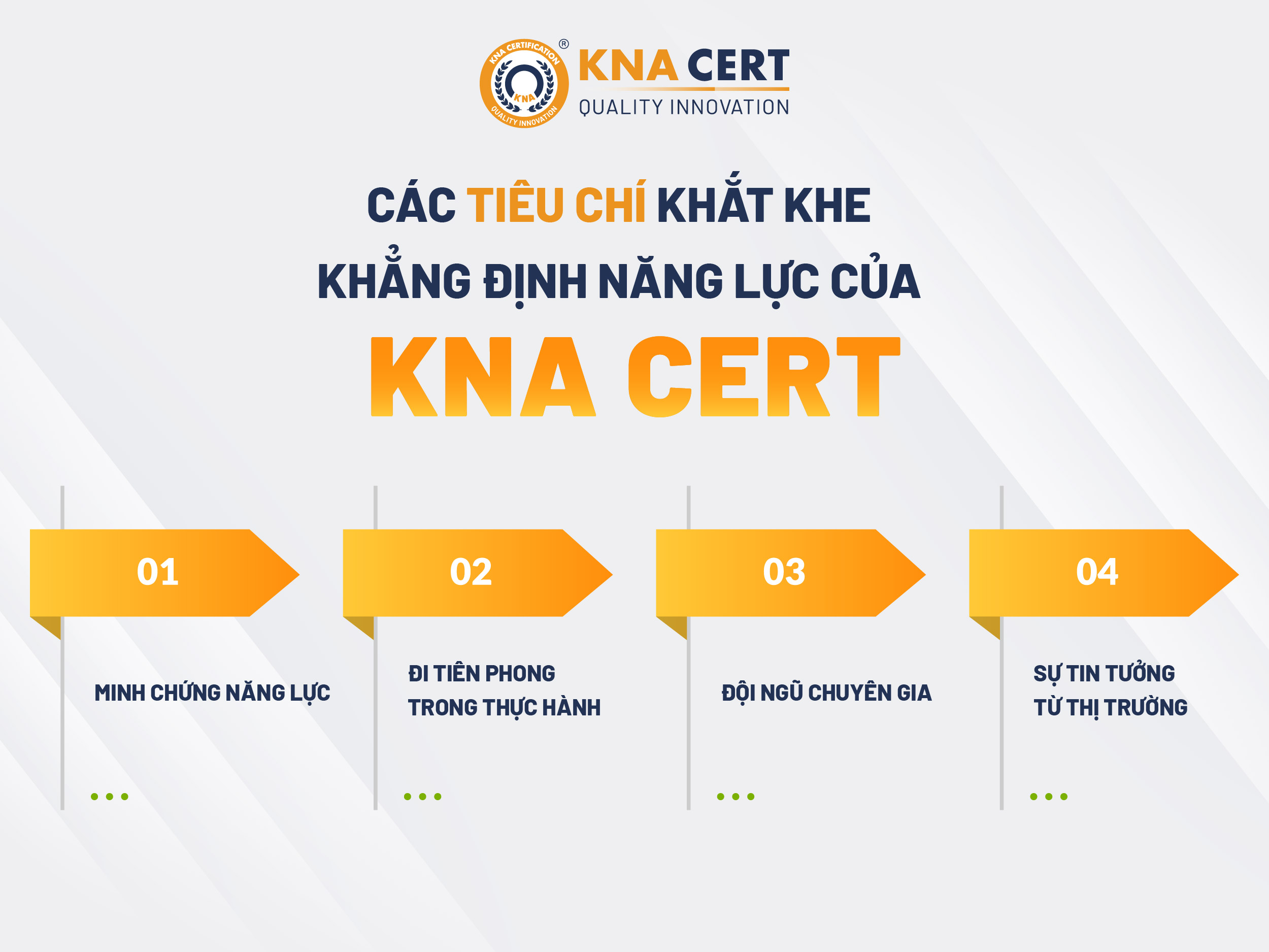 Để trở thành Đối tác được Công nhận (Accredited Ecovadis Partner), KNA CERT đã vượt qua quá trình đánh giá năng lực nghiêm ngặt từ EcoVadis, đáp ứng đầy đủ các tiêu chuẩn quốc tế:
