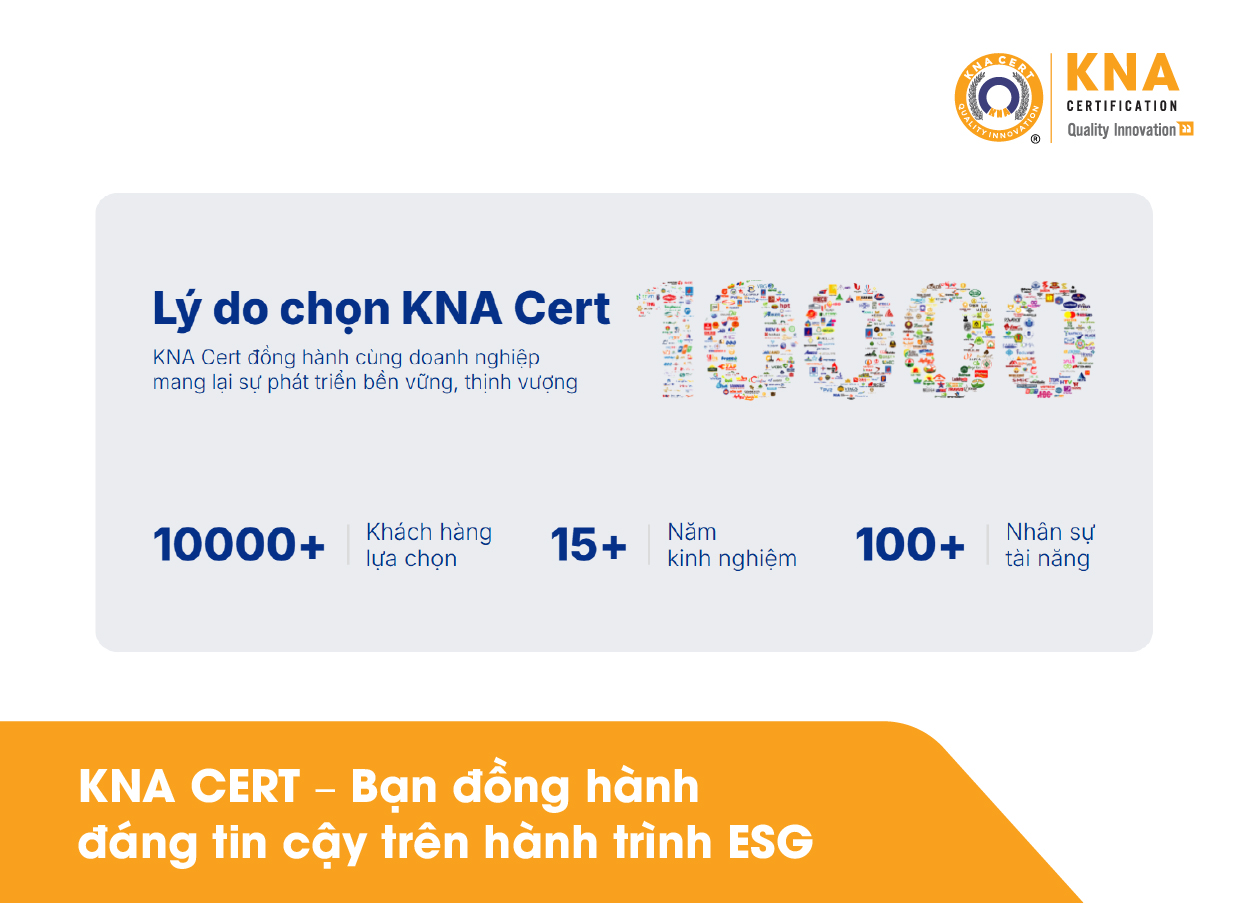 Trong bối cảnh ESG đang trở thành điều kiện cần để tham gia vào chuỗi giá trị toàn cầu, thì việc đồng hành cùng một đối tác giàu kinh nghiệm, thấu hiểu môi trường kinh doanh tại Việt Nam và am hiểu chuẩn mực quốc tế như KNA CERT, chính là lợi thế chiến lược để doanh nghiệp đi nhanh hơn, vững chắc hơn trên hành trình phát triển bền vững. Vui lòng liên hệ theo số Hotline: 0983.246.419 hoặc Email: salesmanager@knacert.com để biết thêm thông tin chi tiết.