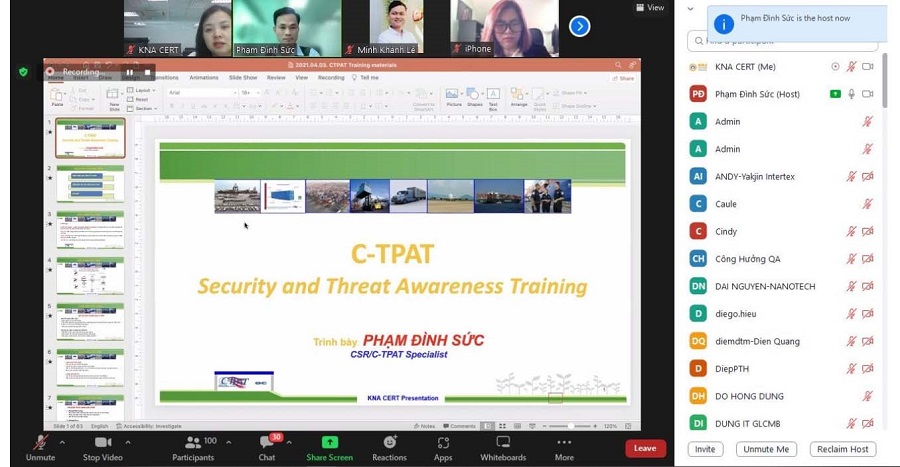 Ngày 31/03/2023, KNA CERT đã tổ chức thành công Khóa học 0 đồng với chủ đề “Nhận thức chung Tiêu chuẩn C-TPAT”.