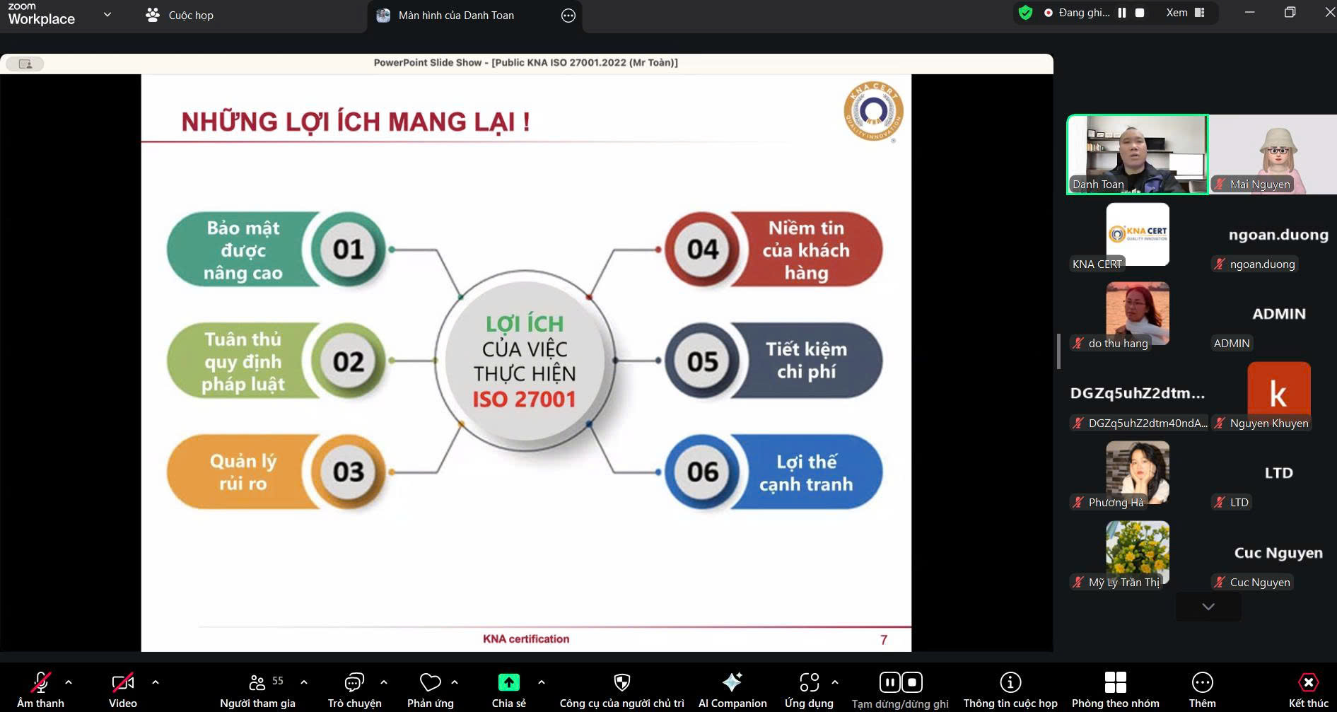Khóa đào tạo nhận thức ISO 27001:2022 miễn phí của KNA CERT cung cấp kiến thức nền tảng về các yêu cầu cốt lõi của tiêu chuẩn, quy trình đánh giá rủi ro an toàn thông tin, và vai trò của từng cá nhân trong việc bảo vệ tài sản thông tin của tổ chức. Học viên sẽ hiểu rõ lợi ích của việc áp dụng ISO 27001 và các bước chuẩn bị cơ bản để triển khai hệ thống.
