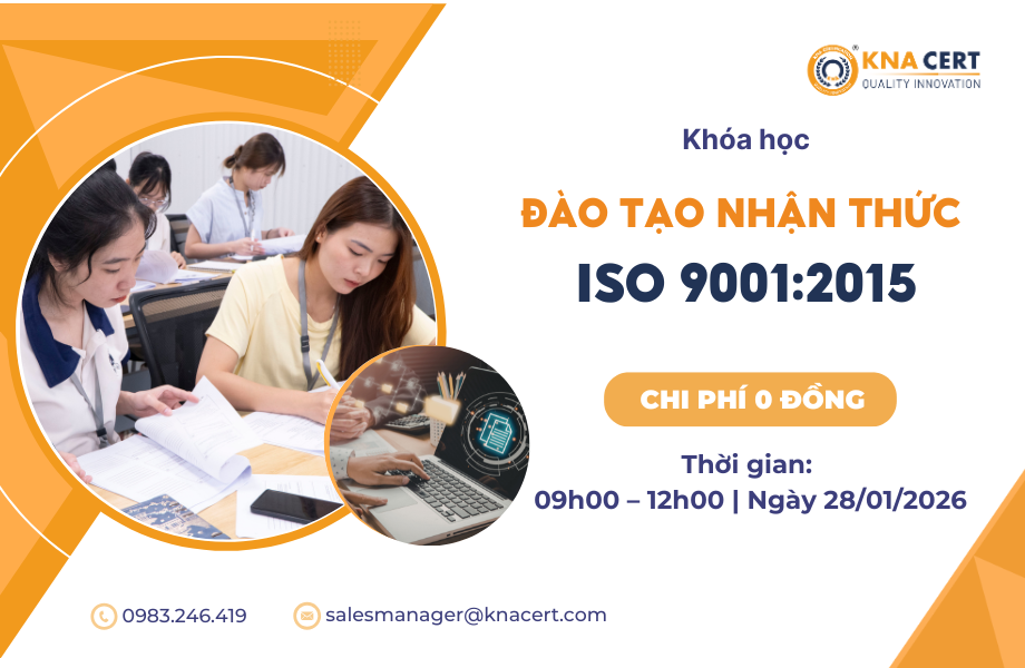 Ngày 28/01/2026, KNA CERT sẽ tổ chức Khóa học miễn phí với chủ đề “Đào tạo Nhận thức ISO 9001:2015”