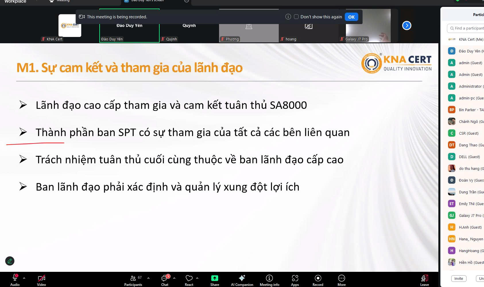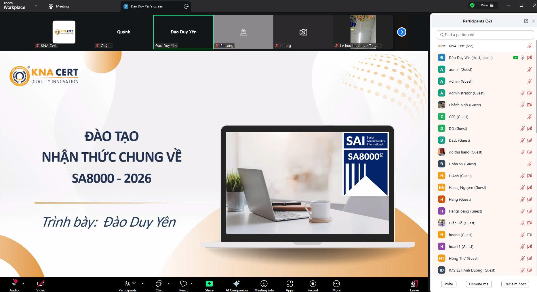 - Tên khóa học: Đào tạo Nhận thức SA8000