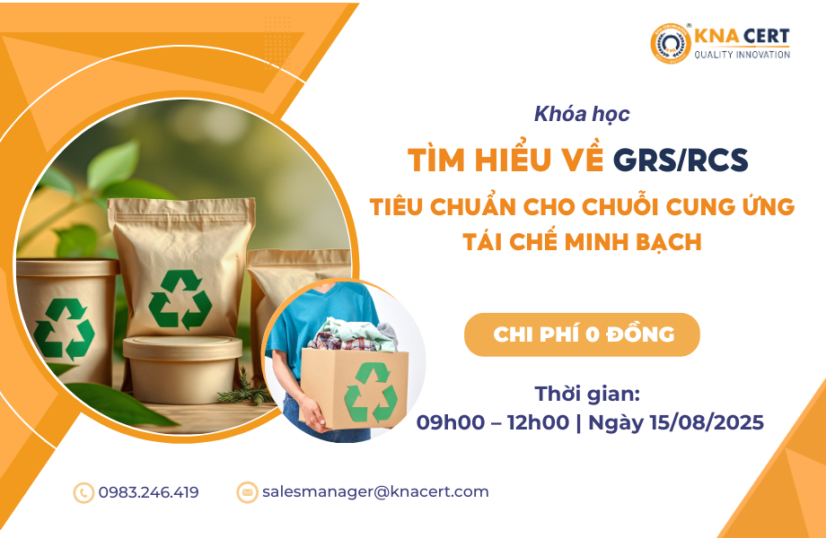 Ngày 15/08/2025, KNA CERT sẽ tổ chức Khóa học 0 đồng với chủ đề “Tìm hiểu về GRS/RCS – Tiêu chuẩn cho chuỗi cung ứng tái chế minh bạch”.