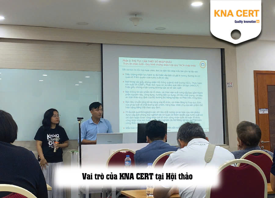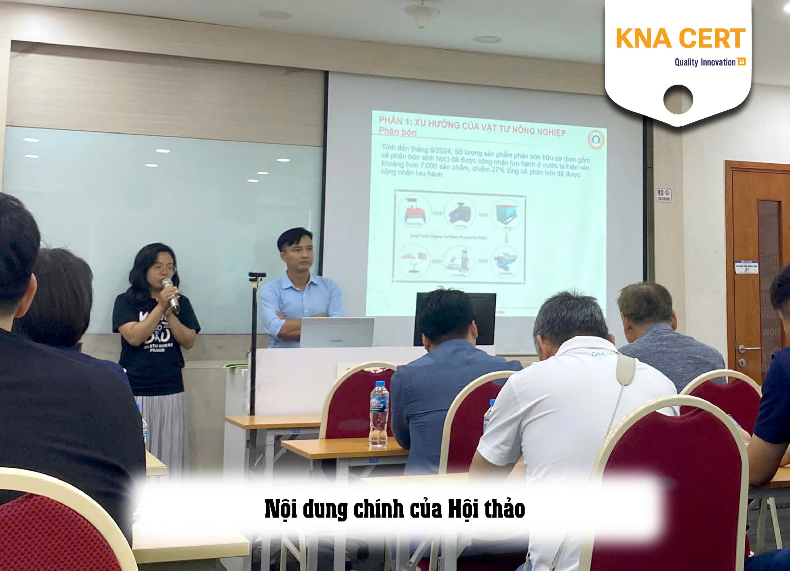 KNA CERT đã đảm nhận vai trò diễn giả cung cấp thông tin chuyên sâu về tiêu chuẩn quốc tế và các quy trình liên quan đến lĩnh vực vật tư nông nghiệp. Bên cạnh việc giới thiệu các tiêu chuẩn phổ biến trong lĩnh vực nông nghiệp, đại diện KNA CERT đã nhấn mạnh lợi ích khi doanh nghiệp áp dụng những tiêu chuẩn này trong sản xuất và phân phối các sản phẩm vật tư nông nghiệp,