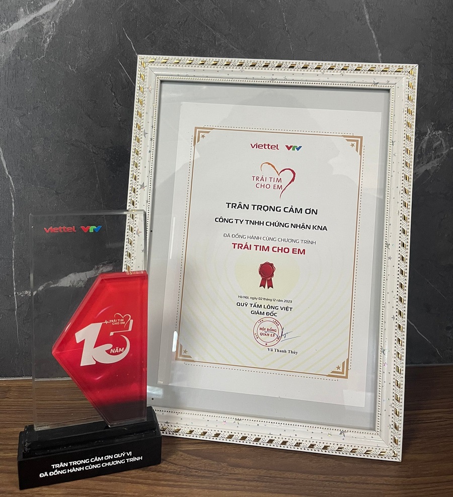 Kỷ niệm chương và giấy chứng nhận tham gia Chương trình "Trái tim cho em" của KNA CERT