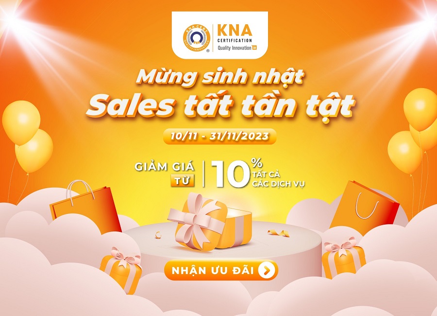 Để chia sẻ niềm vui này và thay cho lời tri ân trong tháng sinh nhật, KNA CERT hân hạnh thông báo chương trình "Mừng sinh nhật KNA, Sales tất tần tật" với ưu đãi giảm giá từ 10%, thời gian từ ngày 10/11/2023 đến ngày 30/11/2023, áp dụng cho tất cả các dịch vụ của KNA CERT: