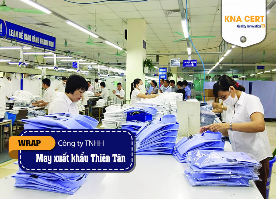 Công ty TNHH May xuất khẩu Thiên Tân lựa chọn KNA CERT là đơn vị cung cấp dịch vụ đánh giá Tiêu chuẩn WRAP (Trách nhiệm xã hội trong ngành may mặc), Tiêu chuẩn C-TPAT (An ninh hàng hóa) và Huấn luyện ATVSLĐ theo Nghị định số 44/2016/NĐ-CP (nhóm 1, 2, 3, 4, 5, 6) cho Công ty.
