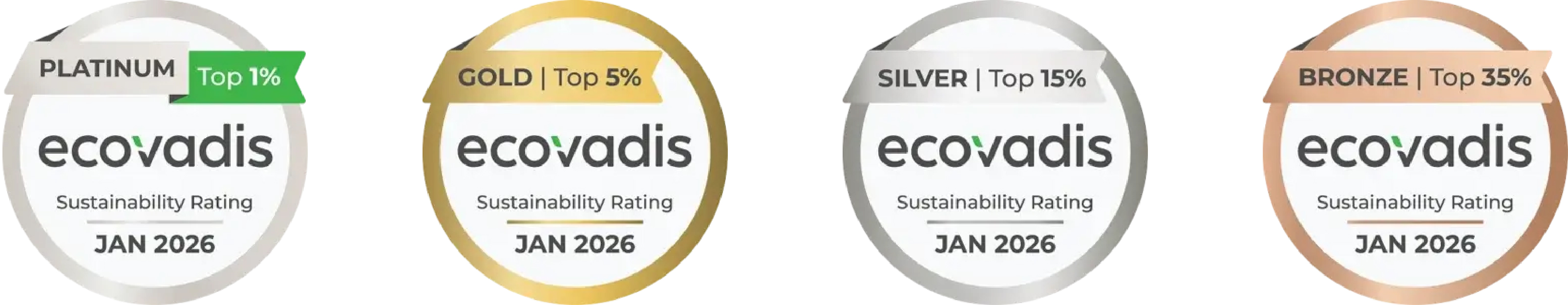 Huy chương EcoVadis được trao cho 35% công ty hàng đầu được EcoVadis đánh giá: