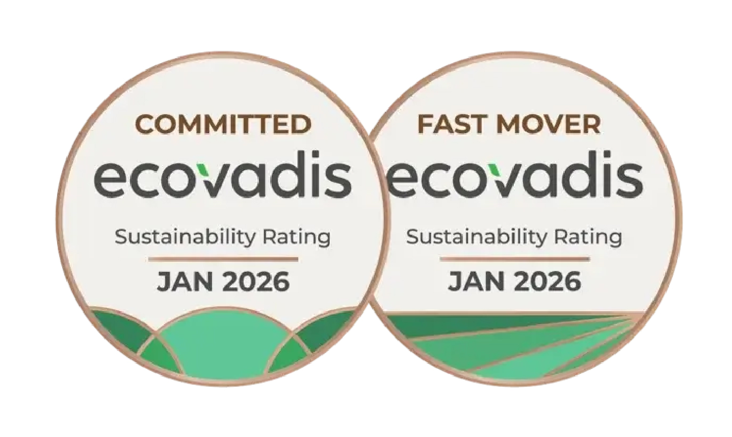 - Huy hiệu Cam kết (Committed): Điểm tối thiểu là 45 (thể hiện hiệu suất 'Tốt' trong Phương pháp EcoVadis)