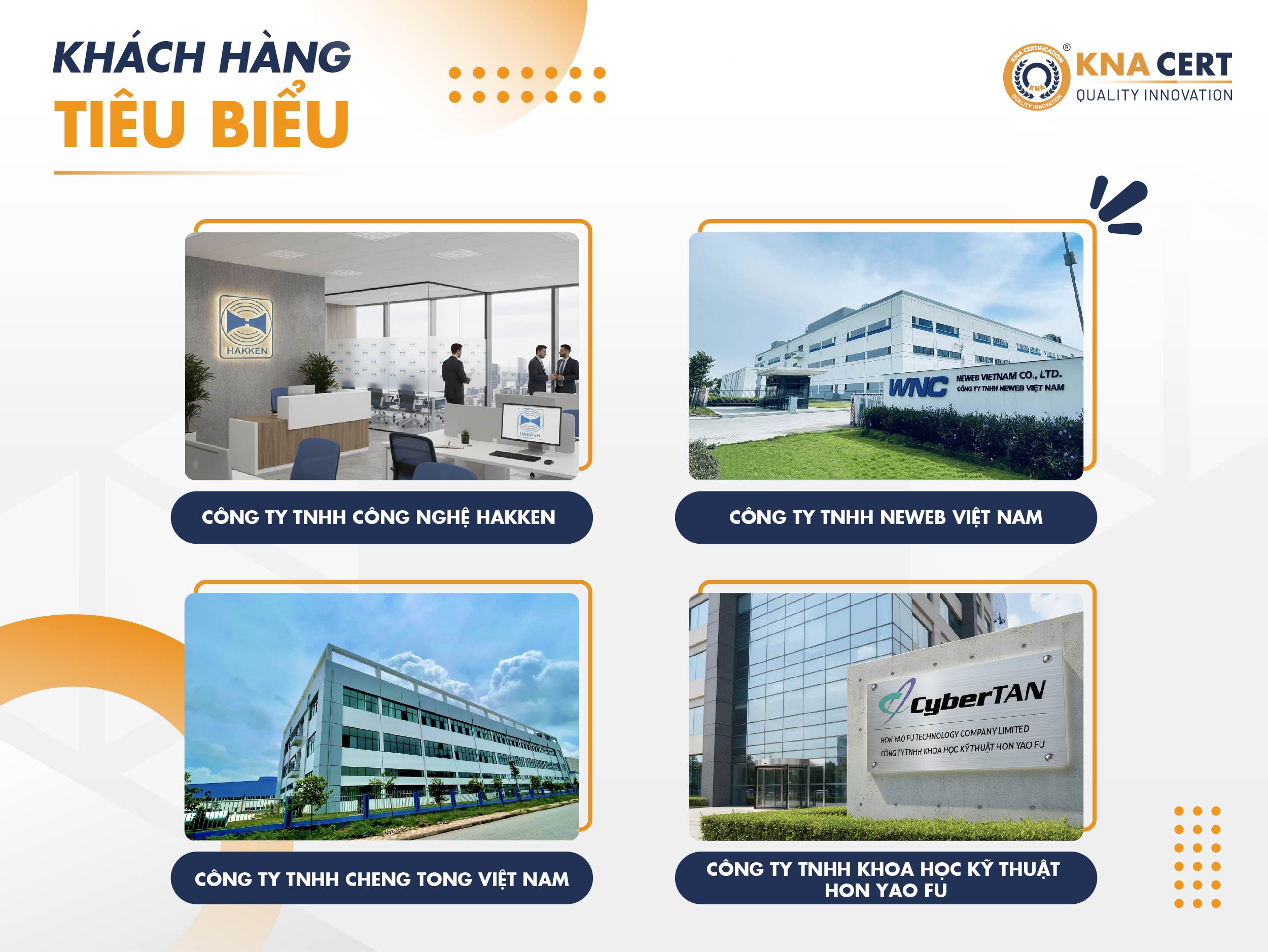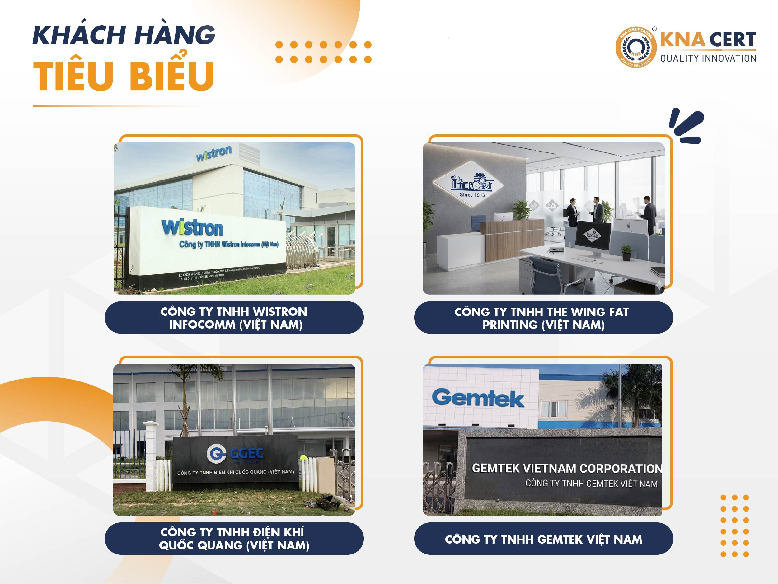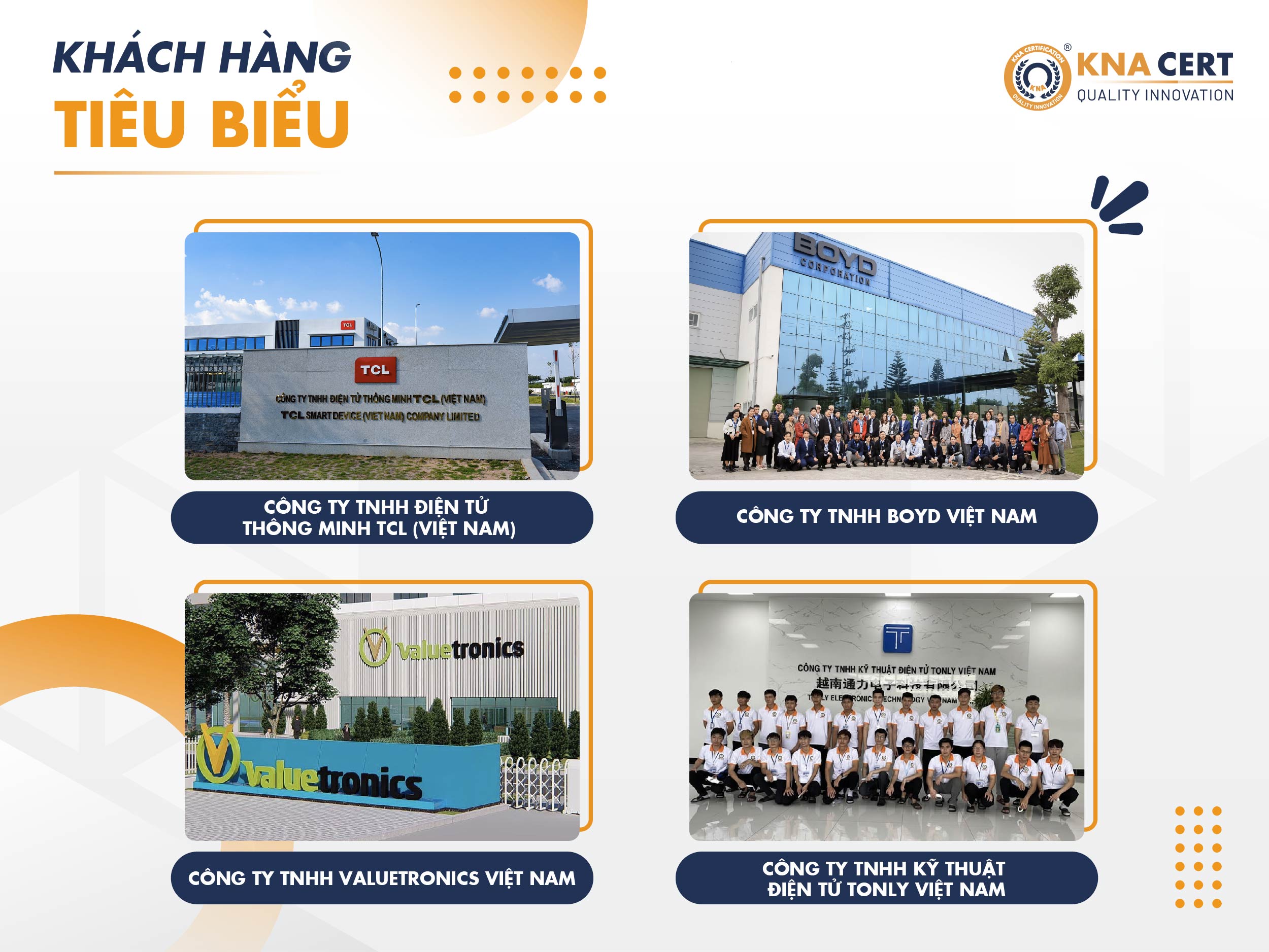 KNA CERT đã hỗ trợ cấp hàng nghìn chứng chỉ RBA cho các doanh nghiệp trong nhiều ngành nghề, lĩnh vực khác nhau. Dưới đây là một số Khách Hàng đã sử dụng dịch vụ của Chúng Tôi: