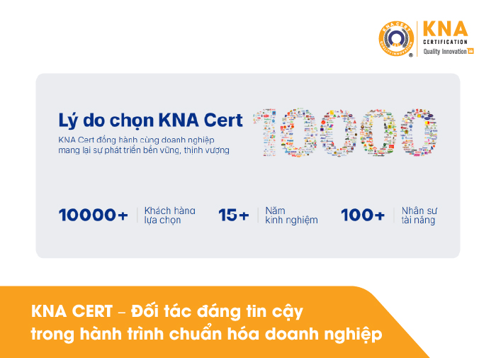 Với phương châm “Thấu hiểu – Đồng hành – Hiệu quả”, KNA CERT không chỉ giúp doanh nghiệp đạt chứng nhận mà còn nâng cao năng lực quản lý, tối ưu hệ thống và chinh phục thị trường. Mỗi tiêu chuẩn được áp dụng thành công là một bước tiến vững chắc giúp doanh nghiệp xây dựng thương hiệu, nâng cao năng lực cạnh tranh và phát triển dài hạn.